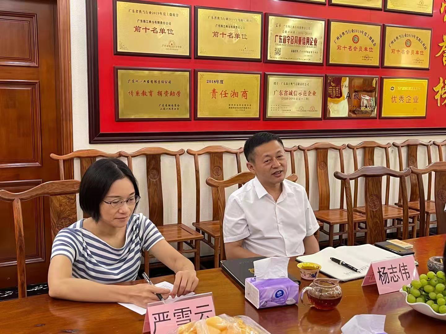 2021年8月18日上午,中国国际贸易促进委员会广东省委员会二级巡视员、广东国际商会负责人李栋,广东国际商会项目经理曾翠媚等一行莅临广东珠江典当行调研指导,广东省贸促会(广东国际商会)副会长、广州市典当行业协会会长、广东珠江典当行董事长杨志伟主持召开座谈会,市典当协会副秘书长严雪云、市海上丝绸之路商会秘书处负责人杨国华、珠江典当行综合管理部负责人刘伟锋等参加了座谈会。
