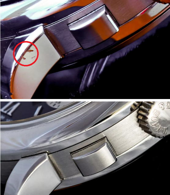 这一项修复在业内一直存在很大争议,许多表友认为手表应该谨慎采用通过打磨掉金属表层而进行翻新的办法,因为手表一旦经过外壳的抛光,很可能会导致贬值。