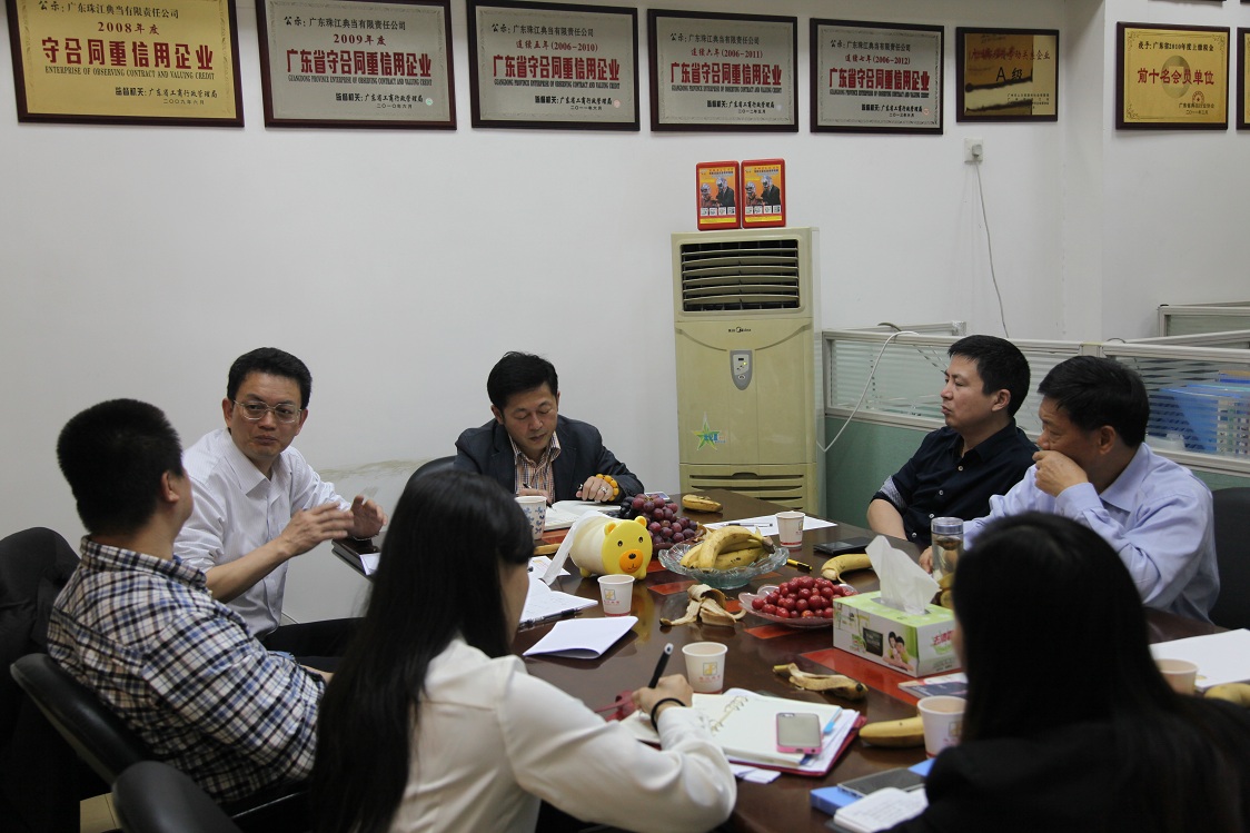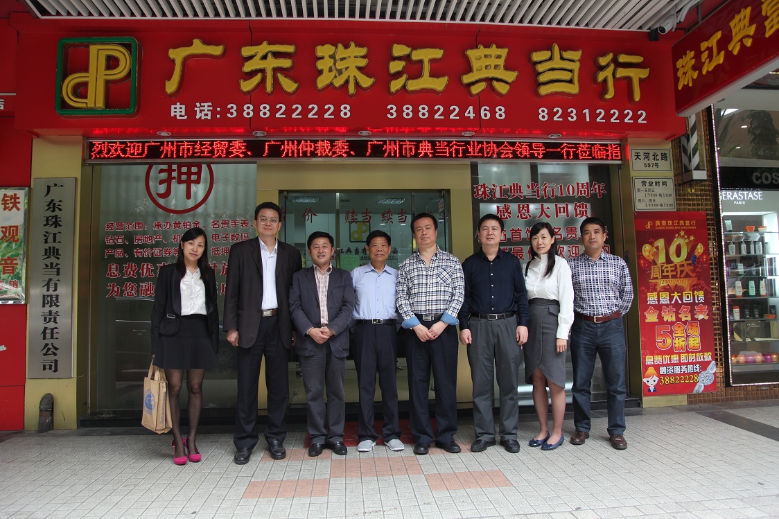 2014年4月9日上午,广州市仲裁委主任陈忠谦、市经贸委特种商业处处长罗军一行莅临广东珠江典当行调研指导,就如何开展典当合同纠纷仲裁、加强风险防范等问题进行交流座谈。座谈会由广州市典当行业协会会长、广东珠江典当行董事长杨志伟主持,参加座谈会的还有市典当协会名誉会长吴菊生、常务副会长、广物典当行总经理林锐群等。