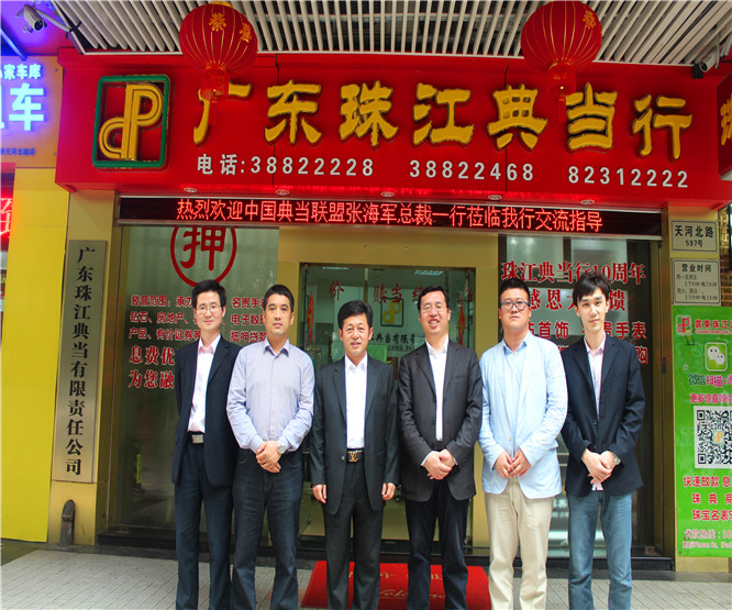 2015年3月19日,中国典当联盟网首席执行官张海军与首席运营官姜传议来广东珠江典当行考察调研,广州市典当行业协会会长、广东珠江典当行董事长杨志伟代表珠江典当行与广州市典当行业协会对他们来广州表示热烈欢迎,并携公司常务副总经理申又喜、副经理龚玉鹏、经理助理刘红光与张海军一行开展座谈交流。