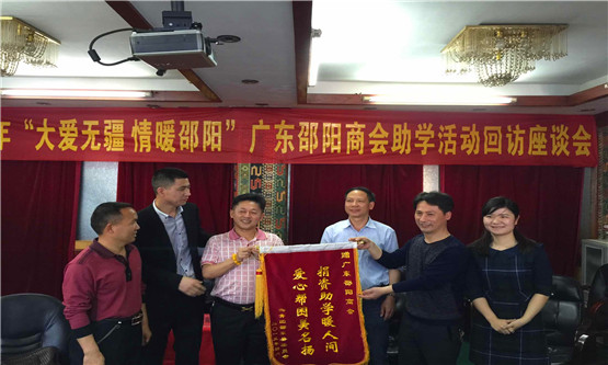 春光融融,鲜花艳艳,春回大地,春色满园。2015年4月3日,由湖南省邵阳市团市委、邵东县团市委、广东省湖南邵阳商会举办的“邵东籍企业家回家乡看望慰问资助的贫困学生座谈会”在湖南邵东三中隆重举行。出席座谈会的有湖南邵阳市委市政府领导、市县团市委领导 、邵东县委县政府、县教育局、火厂坪镇委镇政府领导以及20余名贫困学生共百余领人。广州市典当行业协会会长、广东省湖南商会常务副会长、广东湖南卲阳商会常务副会长、广东省钟表行业协会会长、广东省阳光雨露慈善助学促进会会长、中国典当业领军者、广东珠江典当行董事长杨志伟应邀出席并讲话。