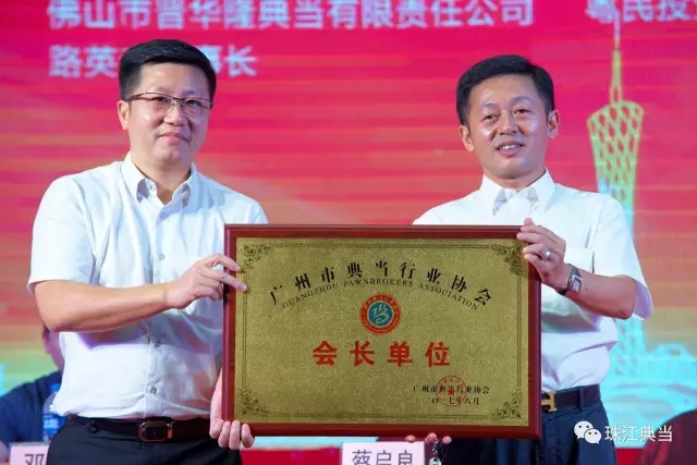 会上还听取审议了第一届监事会工作报告和第一届协会财务收支情况报告,表彰了2016年度“上缴税金前十名”和“税后利润前十名”企业。广州市商务委蔡启良处长、市公安局邓海鹏队长、市民政局于怀全处长、市工商局市场专业分局谈醒局长、陕西省典当行业协会胡晓剑会长、广东省典当行业协会张曙会长等分别致辞,对广东珠江典当行董事长杨志伟先生高票当选、连任广州市典当行业协会会长表示热烈祝贺,对第一届协会所取得的成绩给予高度赞誉,对新一届理事会寄予深切厚望。