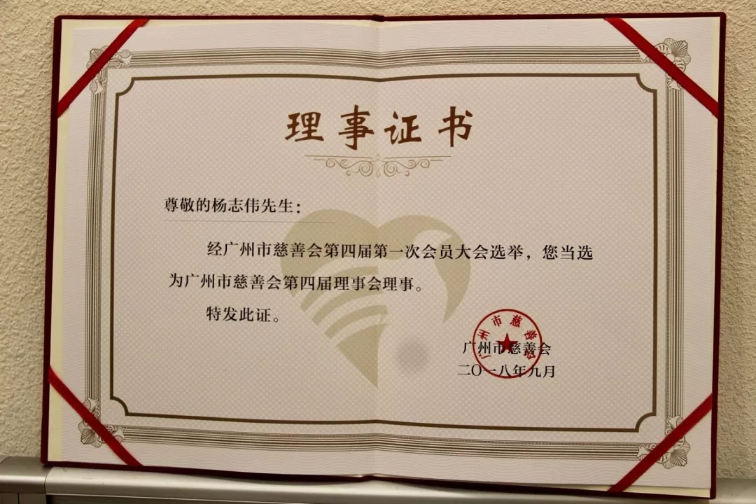 热烈祝贺杨志伟董事长全票当选广州市慈善会理事