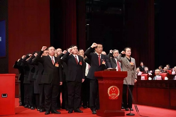 庄严时刻:杨志伟代表向宪法宣誓