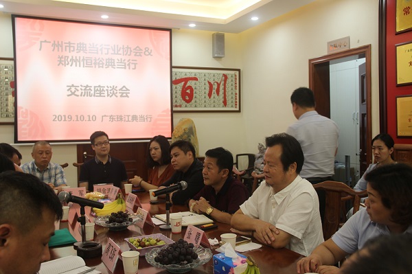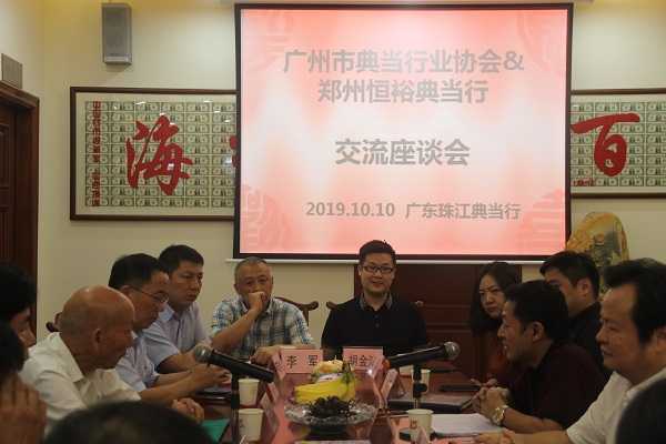 2019年10月10日,河南省郑州恒裕典当有限公司董事长蔡普昭、总经理高飞跃等一行十三人在广东省典当行业协会会长张曙带领下莅临我行考察交流。广州市典当行业协会会长、广东珠江典当行董事长杨志伟主持召开座谈会,广州市典当行业协会部分企业负责人参加会议。