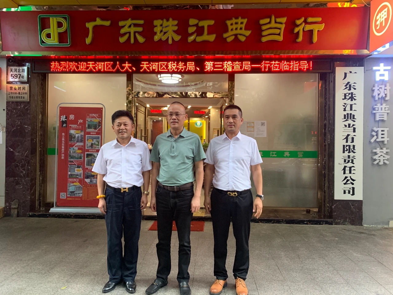 天河区税务局党委书记、局长龙志勇对珠江典当行积极主动履行社会责任、无私回馈社会的大爱善举和杨志伟董事长的家国情怀给予了充分肯定和高度赞誉。他说,通过走访珠江典当行,加深了我们政府部门对典当行业的了解,典当业作为银行金融业的有益补充,在满足城乡居民和个体工商户生产生活资金求、支持中小微企业发展、参与社会治安综合治理、构建社会诚信体系以及助力脱贫攻坚等方面发挥了积极作用,希望小行业大作为,加快发展,做强做优,为我市经济社会发展做出新的更大的贡献。看到墙上琳琅满目的荣誉匾牌,可以感受到珠江典当行是名副其实的守合同重信用企业和诚信示范企业,充分说明了珠江典当行是我省典当行业的领头羊、排头兵,这对于税企共建良好营商环境具有引领示范作用。他强调,在以后工作中,税务部门将继续加强与企业联系,大力支持、帮扶中小微企业度过难关、良好发展。祝愿珠江典当行如滔滔珠江水,有容乃大、海纳百川、奔流到海、勇往直前。