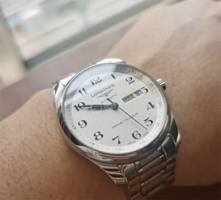 腕表本身38.5毫米的尺寸,搭配星期日历双显示,让浪琴名匠双历更加实用,是一款非常正宗的正装表,优雅又不是气质,是商务男士的不二之选,除了有皮带搭配,也有更适合夏天的钢表带。