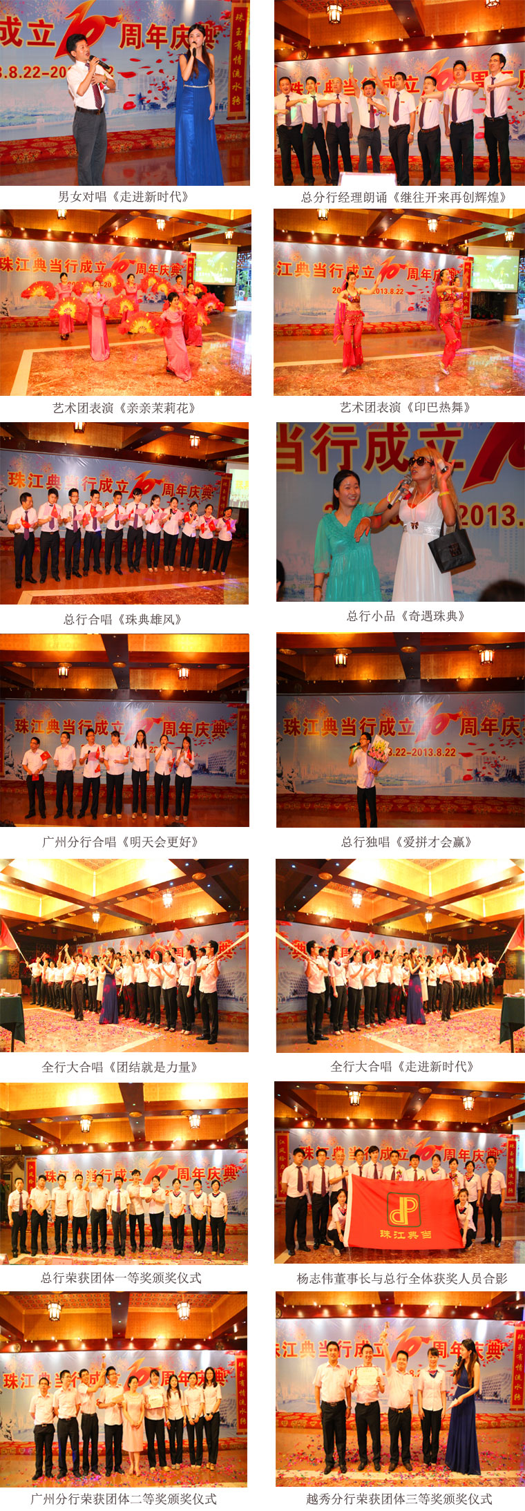 2013年8月22日晚,灯火辉煌,星光璀璨,珠江典当行10周年庆典文艺晚会暨首届“珠典杯”文艺大赛在广州华金盾大酒店盛大举行。