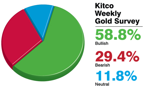 接受调查的34个市场人士中,17人本周做出了回应,其中10人看涨,5人看跌,2人中立。市场人士包括实物金交易员、投资银行、期货交易员、货币管理者和技术分析师。