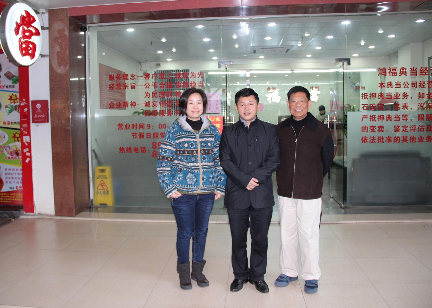 杨志伟会长(中)与杨活玲总经理(左)座谈交流 杨志伟会长(中)与杨活玲总经理(左)于鸿福典当门前合影