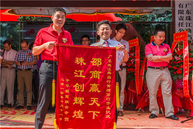 庆典大会上,湖南省人民政府驻广州办事处副主任、广东省湖南商会秘书长徐庆如,广州市人大常委城建委原主任赵庆华,广东省典当行业协会会长张曙,广东省湖南邵阳商会会长李惠海分别发表了热情洋溢的讲话,表达了最诚挚的祝愿,最中肯的赞许,最衷心的祝福与希望。张曙会长在致辞中赋诗一首并赠送寓意深刻、水平精湛的书法作品:“北有长江南珠江,珠江典当真辉煌,广东珠江润华夏,珠江之水远流长”。广东省湖南邵阳商会会长李惠海代表中华邵商联合会赠送“邵商赢天下,珠江创辉煌”的锦旗,祝贺珠江典当行黄埔分行开业大吉,寄托家乡人民的深情厚意。