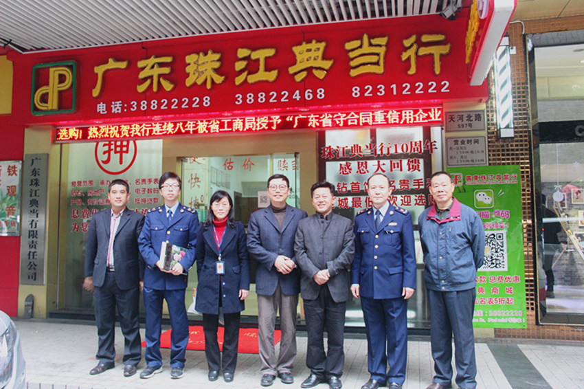 2014年12月26日下午,广州市工商局专业市场管理分局书记方新宇、中介服务所所长宋春生一行莅临广东珠江典当行调研指导。广州市典当行业协会会长、广东珠江典当行董事长杨志伟组织座谈会。