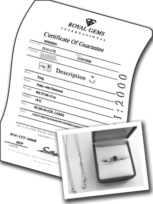 随着科学技术在珠宝业的广泛运用,天然宝石和合成处理宝石、仿宝石的鉴别越来越难。部分珠宝即使是经验丰富的专业珠宝玉石鉴定师也需要借助大型仪器才能加以鉴别,何况一般的消费者。因此,消费者在购买珠宝首饰时,一定要求商家开具正规的发票,在发票上一定要用中文标注宝石的名称、级别,以及是否经过人工处理等,甚至可以将商家的承诺一并写在发票上。