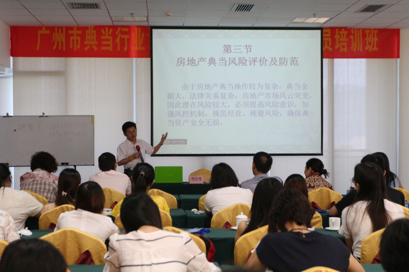 广州市典当行业协会会长、广东珠江典当行董事长、香港(HB)金融研究院副院长、客座教授杨志伟声情并茂地讲授了“房地产典当实务与风险防化(防范与化解)”课程。课前,他风趣幽默地说:我今天讲的这堂课相当于给每位学员赠送了数百上千万元,为什么呢?因为我们都是有故事的人,我常说,在我们这个行业,发生在自己身上的是故事,发生在别人身上是事故,我和所有典当同仁一样,一路走来,特别是初涉典当行业的前两年,我们是交过学费的。今天将自己和同行在经营过程中失误的教训或成功的经验分享给大家,必将帮助大家少走弯路、规避风险、减少损失、良好发展。杨志伟结合自己从事经济、金融和典当近三十年的经历,循循善诱、因势利导,以点带面,点面结合,阐述了房地产典当(抵押)基本概论、相关法律法规、操作规程,着重介绍了如何开展贷款的“三查”(贷前调查、贷中审查、贷后检查)工作,结合典型案例重点剖析、归纳了房地产典当的风险点以及如何有效防范、化解风险的措施和方法。他最后强调,经营典当就是经营心态,典当从业人员务必具有良好的心态,切忌急躁冒进、幻想一夜暴富;务必正确处理好规模效益、资产质量和规范经营三者的辩证关系;务必在规避风险的前提下,大胆地开拓业务、开拓市场,极大的占有市场份额。在当前和今后相当长的一个时期内,我们要全面谋划新常态下典当业健康持续快速发展,以改革创新发展为驱动,争创新优势,抢抓新机遇,引领新发展,争创新辉煌,实现我市典当业又好又快发展!杨志伟热情洋溢、精彩纷呈而又紧接地气的授课,赢得了全场一阵又一阵的热烈掌声,收到了良好效果。